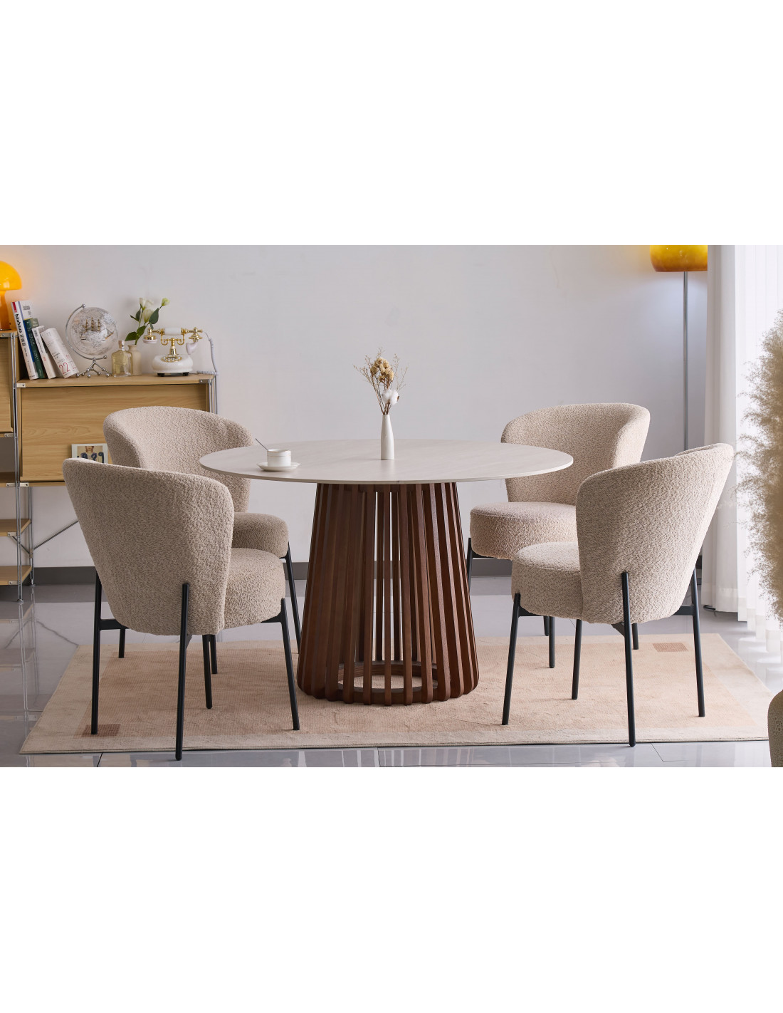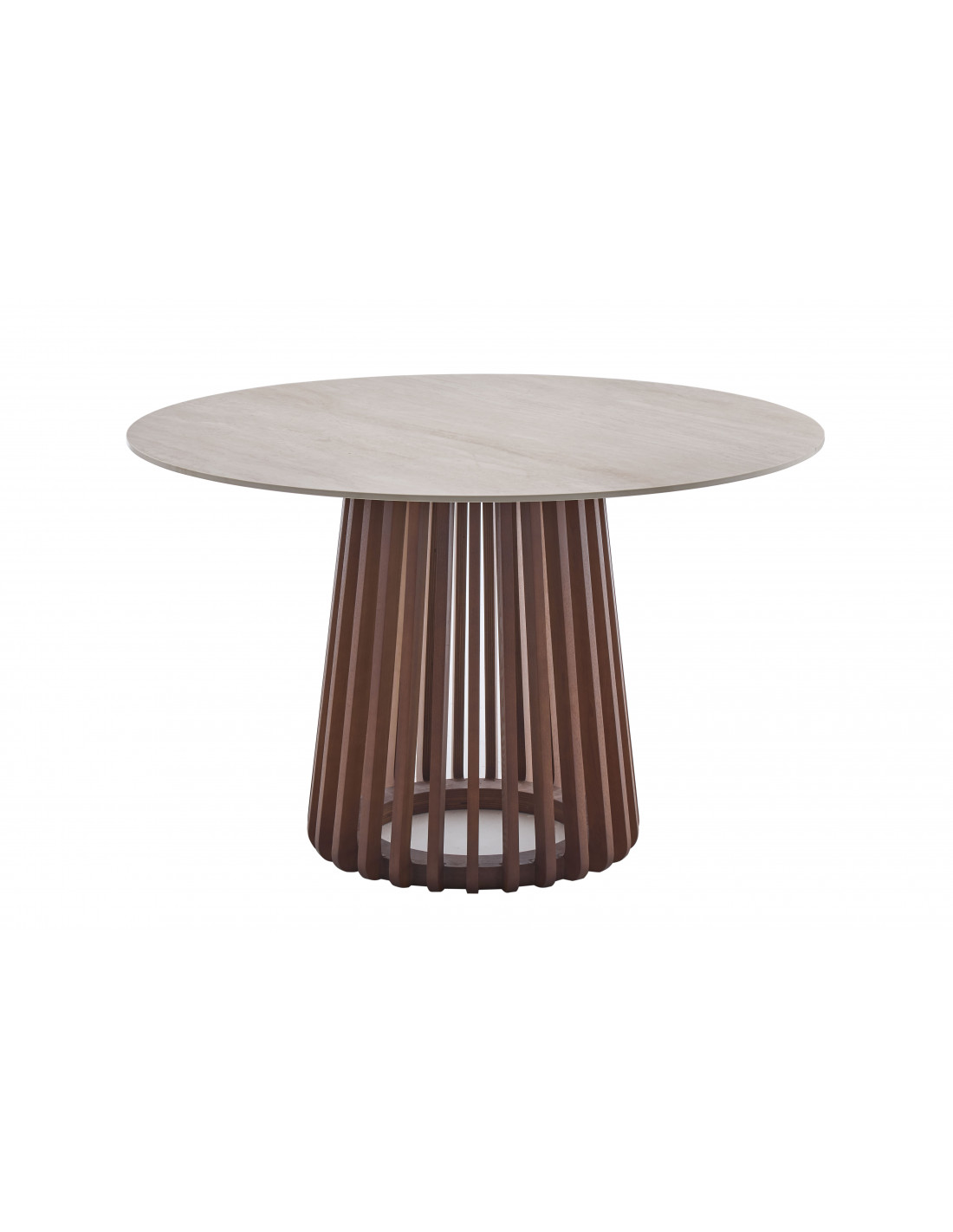 Table à manger ronde MAORI – Plateau pierre frittée & pied bois noyer