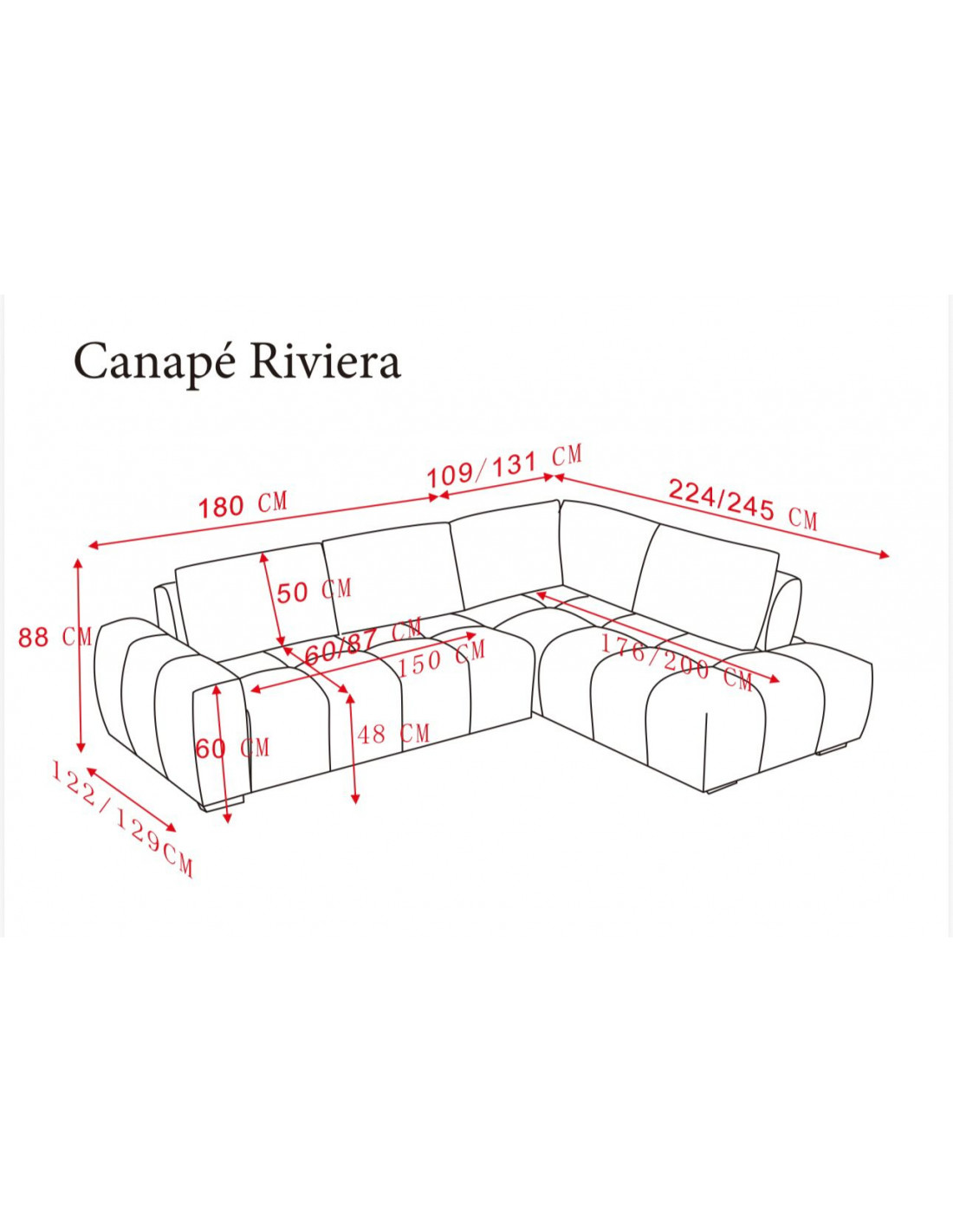 Transformez votre salon avec le canapé Riviera, un grand canapé d’angle au design moderne, pensé pour offrir un maximum de confort et d’espace.