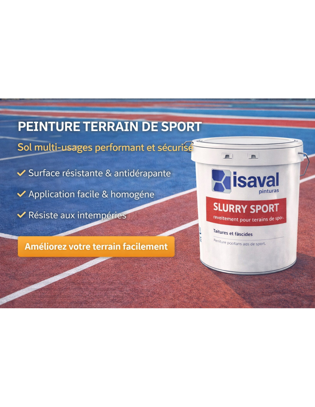 N'oubliez pas de sauvegarder votre personnalisation pour pouvoir l'ajouter au panierPeinture acrylique haute opacité et excellent adhérence, résistance extraordinaire au frottement humide et à l’alcalinité des supports. Recommandée pour les installations sportives en raison de sa grande résistance, sa finition anti‑dérapante et sa durabilité.